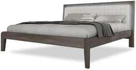 Postel z masivu THÉRA dvoulůžko. Celomasivní dřevěná postel o šíři masivu 4/3,4 cm s čalouněným ohýbaným čelem.