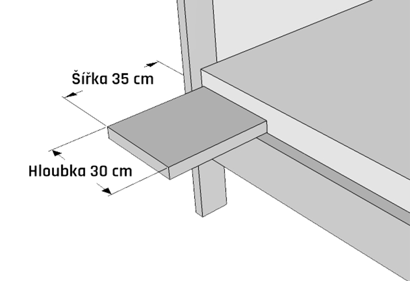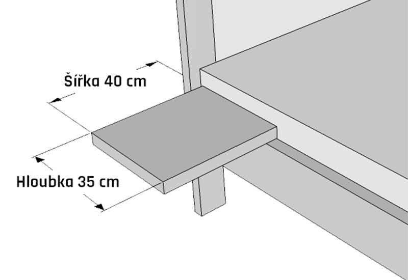 | Výška celkem: | výška bočnice + 3,7 cm / 4 cm |