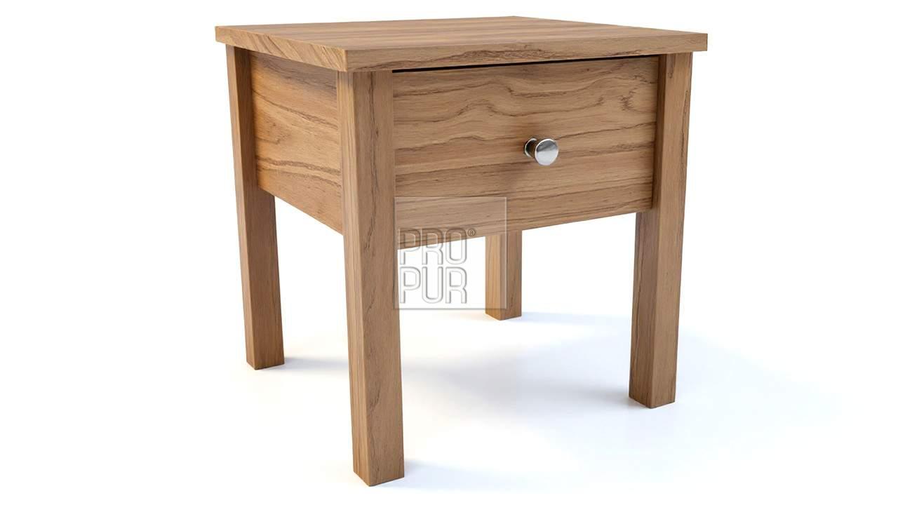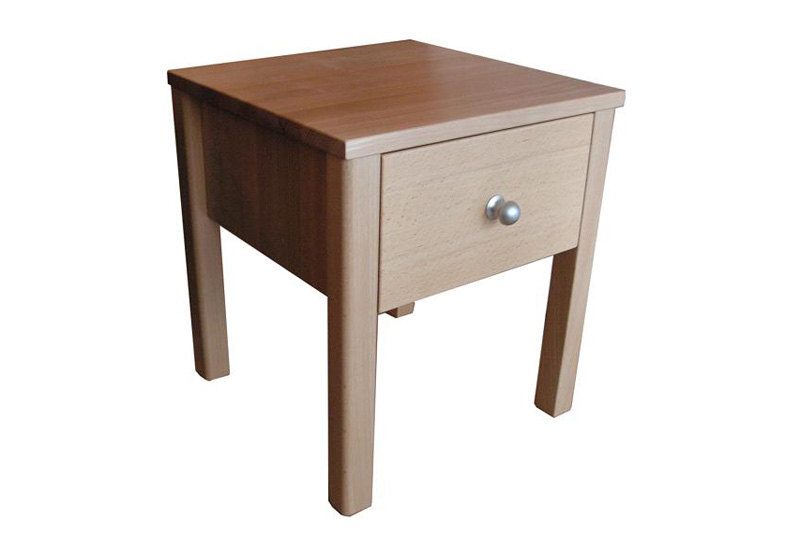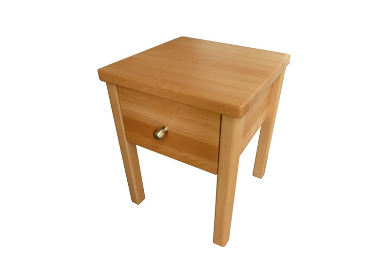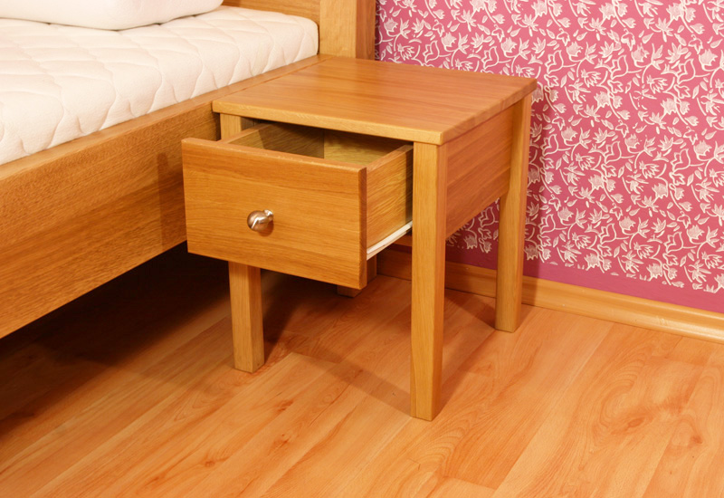 Noční stolek z masivu DANTE, 1x šuplík na nožkách. Základní rozměry šířka 40 cm, hloubka 40 cm a výška stolku je 45 cm. Design nočního stolku přizpůsobujeme k designu vybrané postele. Noční stolky jsou vyráběny z masivního dřeva, vnitřní části šuplíků a záda jsou z lamina v dekoru vybrané barvy a druhu dřeva. Pojezdové kování je rolničkové od hettich, s příplatkem je na žádost možné zvolit i jiné kování. Na šuplíku lze zvolit druh úchytky, madla jsou z kolekce ProDecor od Hettich s doživotní zárukou.
