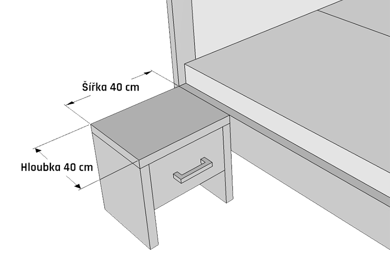 Noční stolek z masivu JAN/LUCIE, 1x šuplík umístění na masivním plátu. Základní rozměry šířka 40 cm, hloubka 40 cm a výška stolku je 45cm. Design nočního stolku přizpůsobujeme k designu vybrané postele. Noční stolky jsou vyráběny z masivního dřeva, vnitřní části šuplíků a záda jsou z lamina v dekoru vybrané barvy a druhu dřeva. Pojezdové kování je rolničkové od hettich, s příplatkem je na žádost možné zvolit i jiné kování. Na šuplíku lze zvolit druh úchytky, madla jsou z kolekce ProDecor od Hettich s doživotní zárukou. Provedení masiv Buk, nebo za příplatek Dub, Jasan.