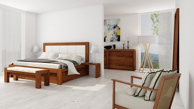 Postel z masivu MODENA dvojlůžko, šíře masivu 12 x 8 cm. Čelo prošívané čalounění.