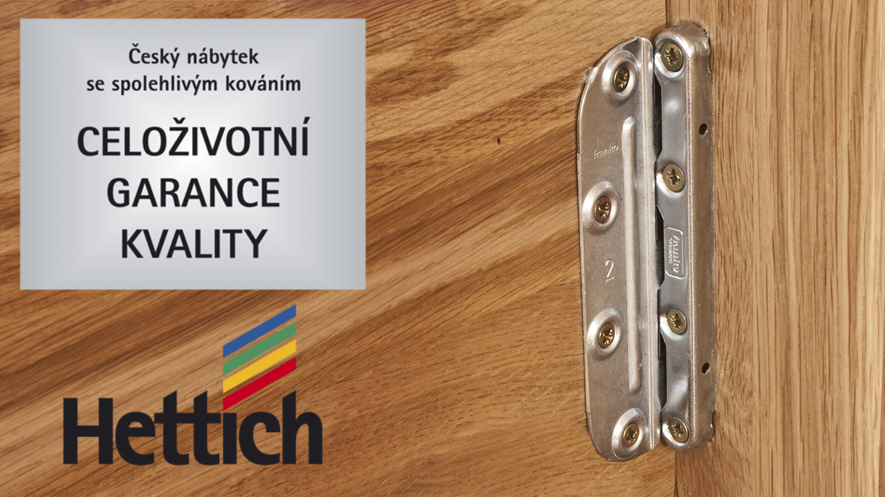 | Kování: | Zdvojené závěsné Hettich (tříbodové) |