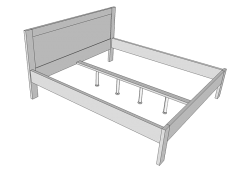 Spojení bočnic a čel je provedeno dvojitým postelovým kováním od značkového Německého výrobce Hettich. Uprostřed postele je středová lať s výškově nastavitelnou nohou. Postel se skládá z bočnic, nožního čela, hlavového čela a středové latě. Systémy závěsného kování umožňují snadnou montáž i demontáž. Verze postele s úložným prostorem obsahuje stažení bočnic a nožního čela, dále může za příplatek obsahovat dvě dna pro ukládání věcí do úložného prostoru. Provedení na foto Olej BIOFA Orange Braun.