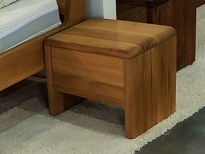 Noční stolek z masivu BELAGO je tvořen masivním rámem o šíři masivu 4 cm. V základu je noční stolek s jedním šuplíkem. Provedení masiv Buk nebo za příplatek Dub, Jasan. Základní výška po horní desku stolku je 45 cm, rozměr stolku je šíře 45 cm, hloubka 35 cm. Na přání uděláme stolek v jakémkoliv rozměru. Kalkulaci na jiný rozměr Vám sdělíme obratem. Noční stolek je z masivu o šíři 4 cm, čelo šuplíku je z masivu o šíři 2 cm a vnitřek šuplíku je z lamina, v dekoru vybraného dřeva. Výsuvné kování je rolničkové od Hettich.